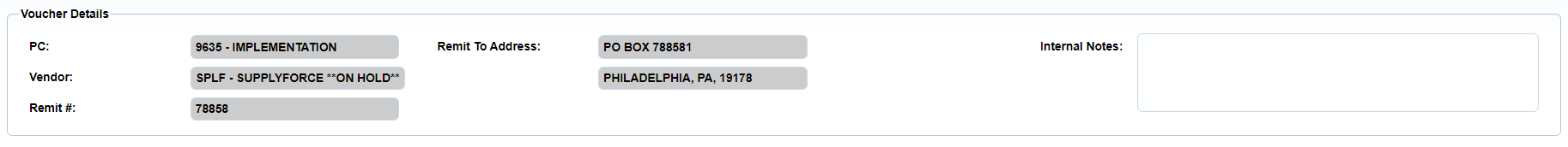 | Vendor | Displays the vendor who billed the invoice on the voucher. |
