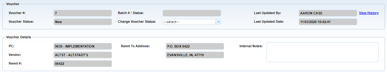 | View History | Click the blue hyperlink to see the history of the voucher. |